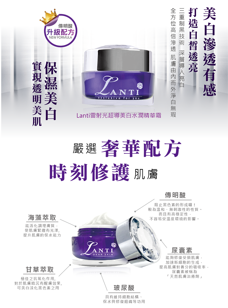 ◆商品名稱: Lanti雷射光超導美白水潤精華乳霜