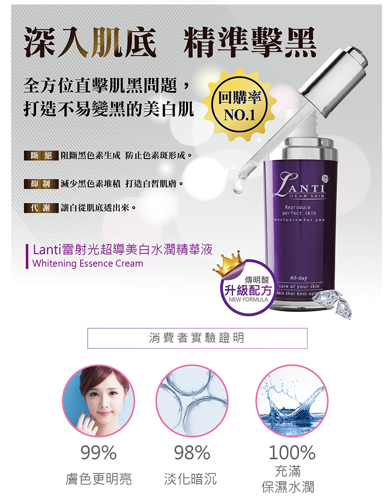 ◆商品名稱:  Lanti雷射光超導美白水潤精華液
