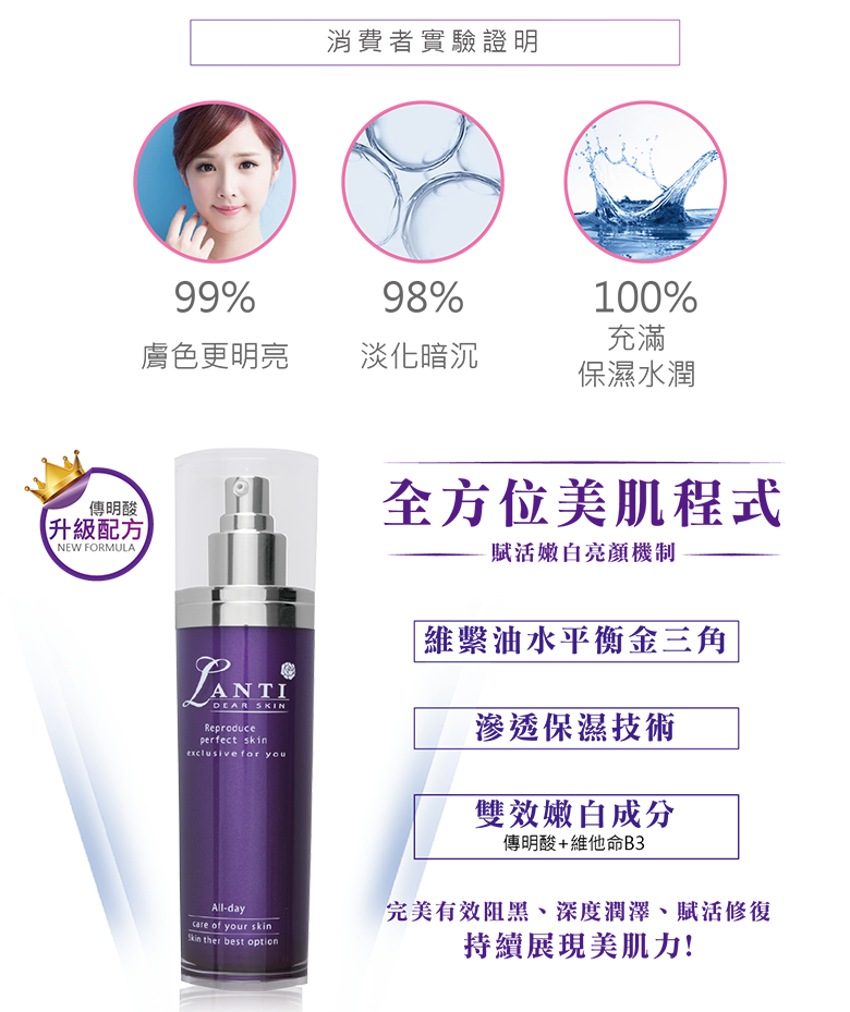 ◆商品名稱: Lanti雷射光超導美白水潤化妝水