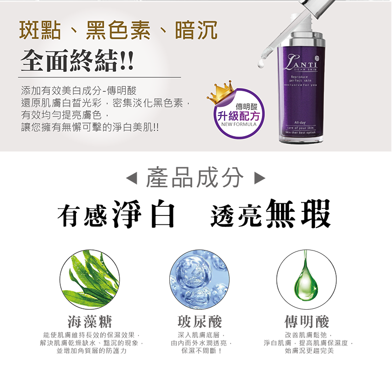 ◆商品名稱: Lanti雷射光超導美白淡斑精華液