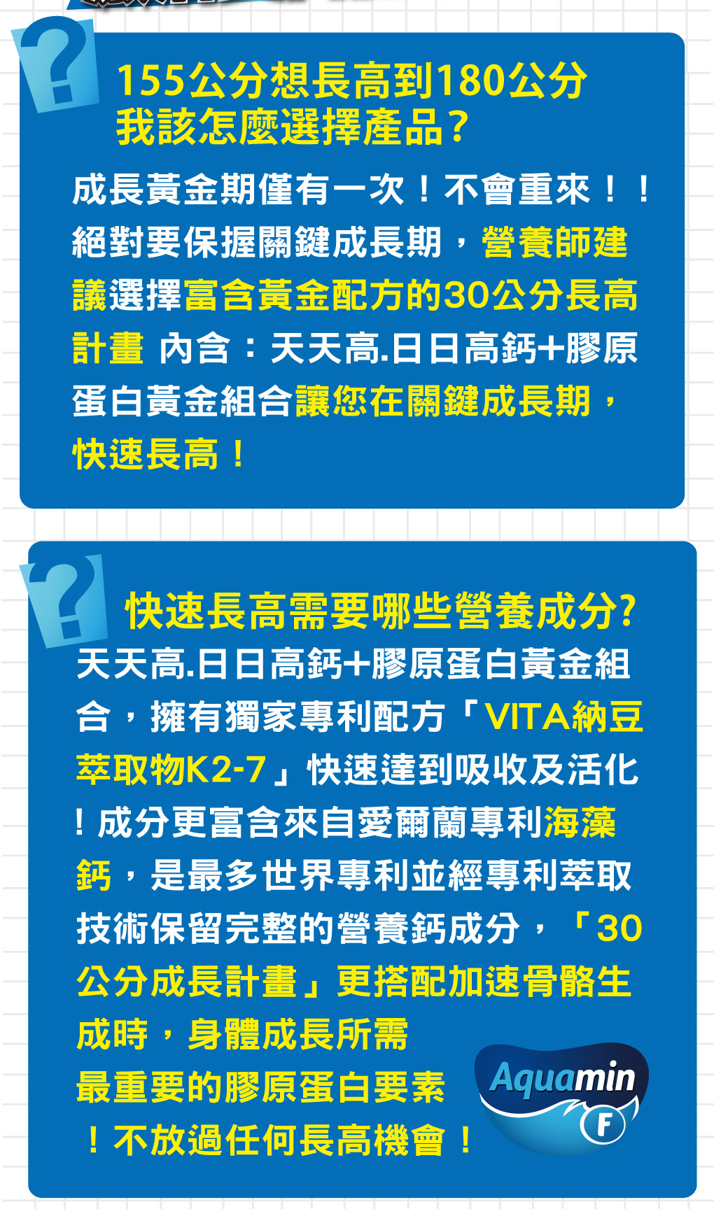 建議持續使用3~6個月以上,加強長高效果可搭配DHK膠原蛋白一起使用、持續使用不間斷為最佳。