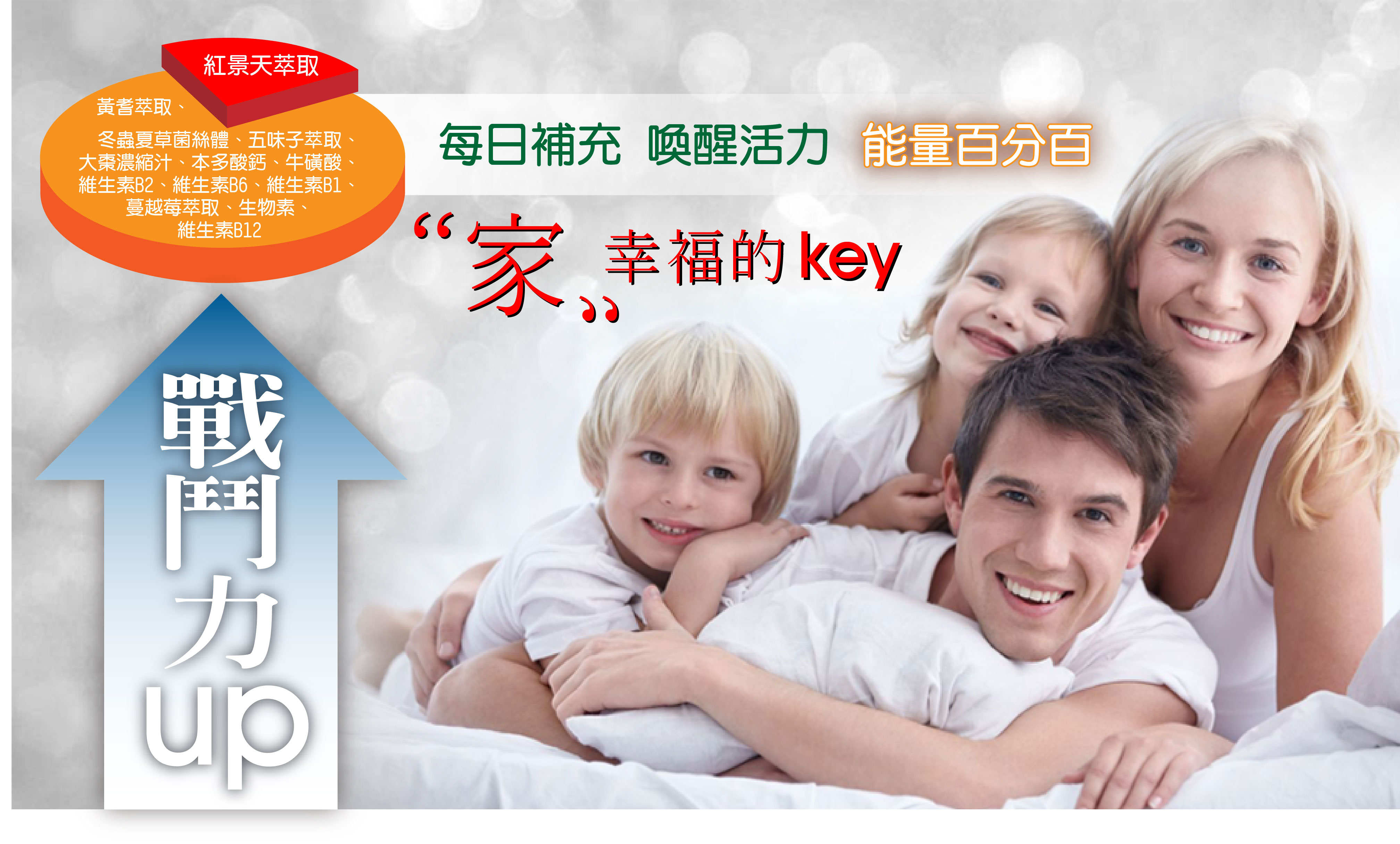 成 分:紅景天萃取、黃耆萃取、冬蟲夏草菌絲體、五味子萃取、大棗濃縮汁、本多酸鈣、牛磺酸、維生素B2、維生素B6、維生素B1、蔓越莓萃取、生物素、維生素B12