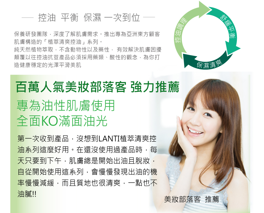 天然質萃好清爽 輕鬆控油 遠離荳荳肌