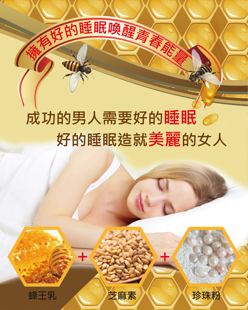 成 分:紅石榴萃取(專利)、L-抗壞血酸、蜂王乳(專利)、大豆萃取物(去醣基)、牛乳萃取(含賽洛美)、芝麻萃取(含芝麻素)、複合甘胺酸亞鐵(專利)、生育醇、珍珠粉(專利)、二氧化矽