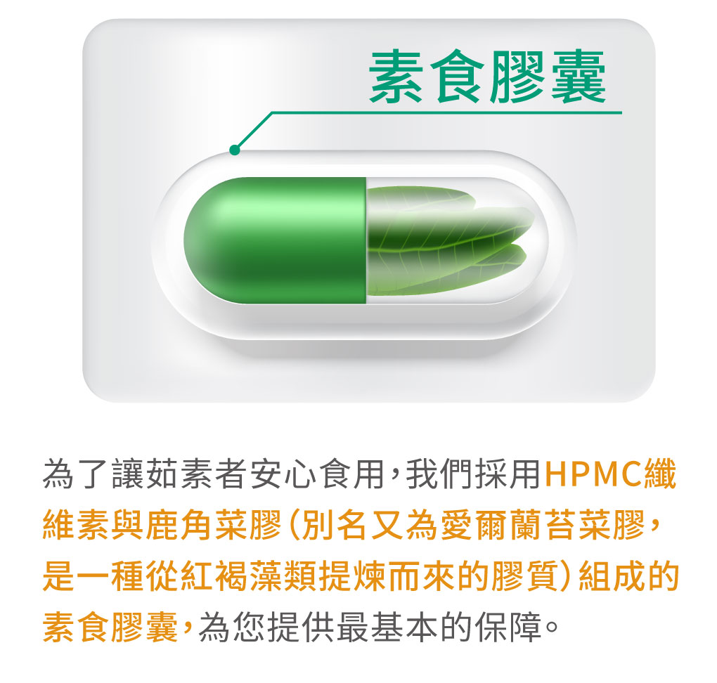 成 分:酵母發酵物、豌豆蛋白、紅藻鈣(專利)、甘胺酸亞鐵(專利)、藻類萃取(含DHA)