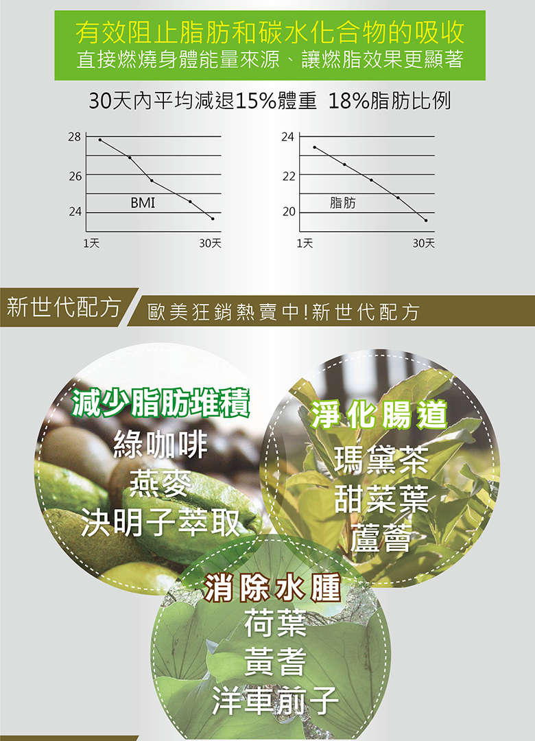 成 分:專利非洲芒果子萃取物、專利綜合蔬果酵素、綠咖啡豆萃取物、愛爾蘭海洋鎂、阿勃勒萃取物、L-肉鹼、苦橙萃取物、專利花粉、麥芽糊精、二氧化矽