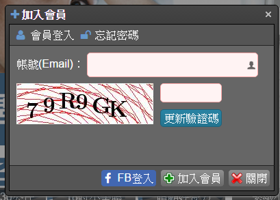 輸入您的EMAIL及畫面上的驗證碼(共6碼,隨機出現,英文字不分大小寫)